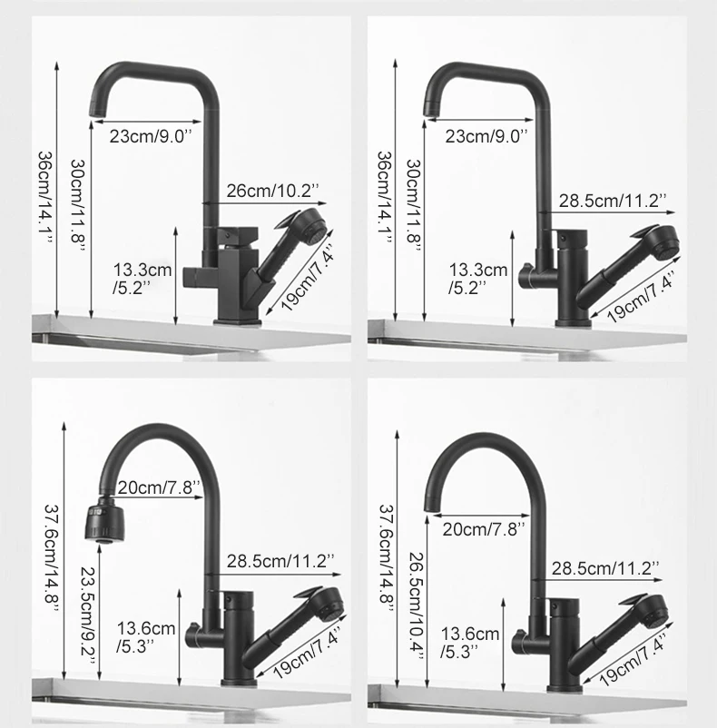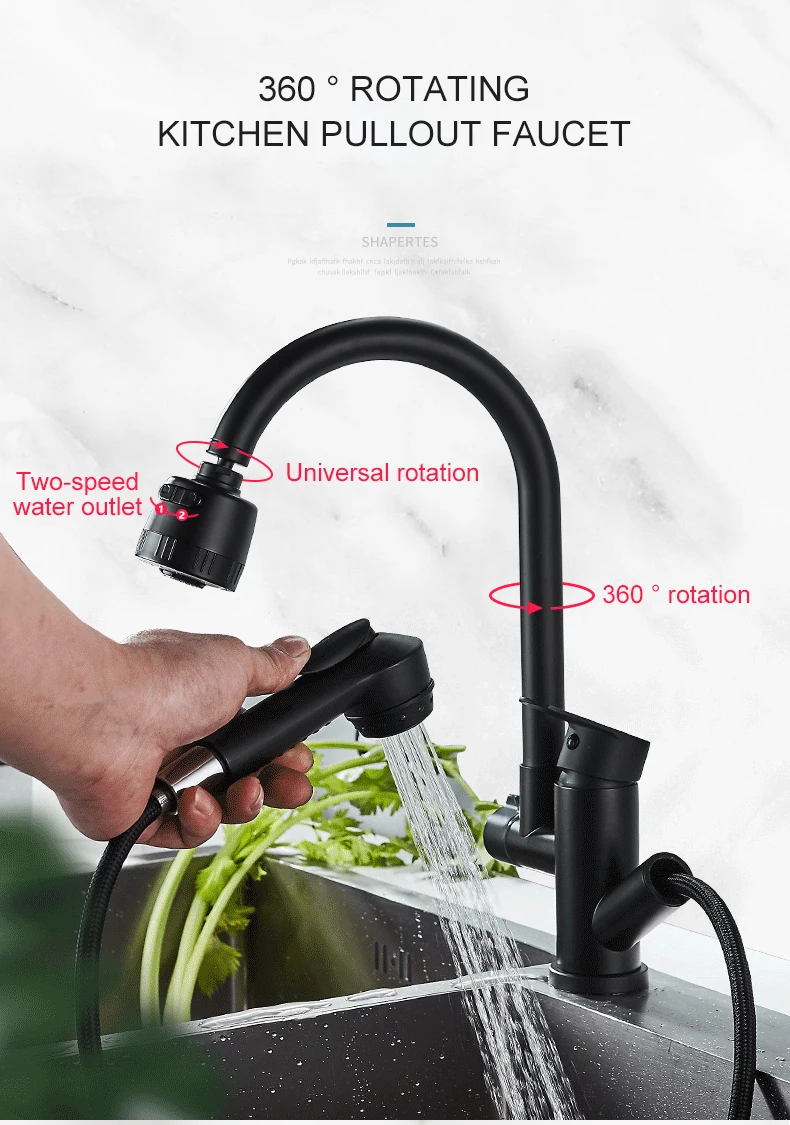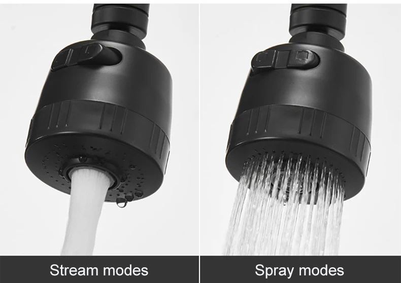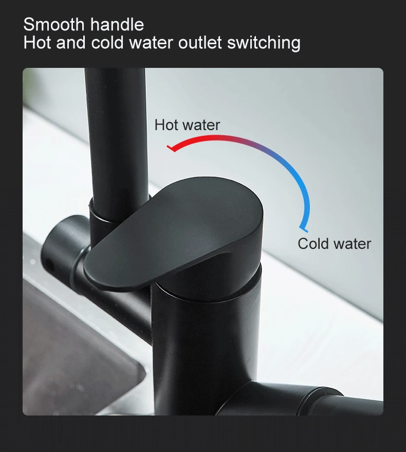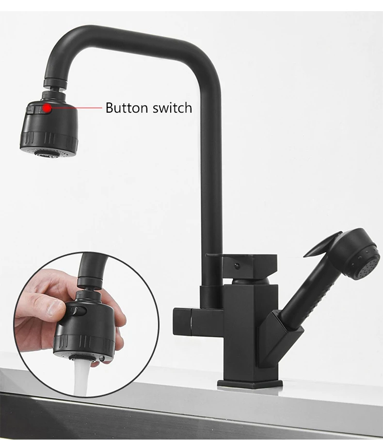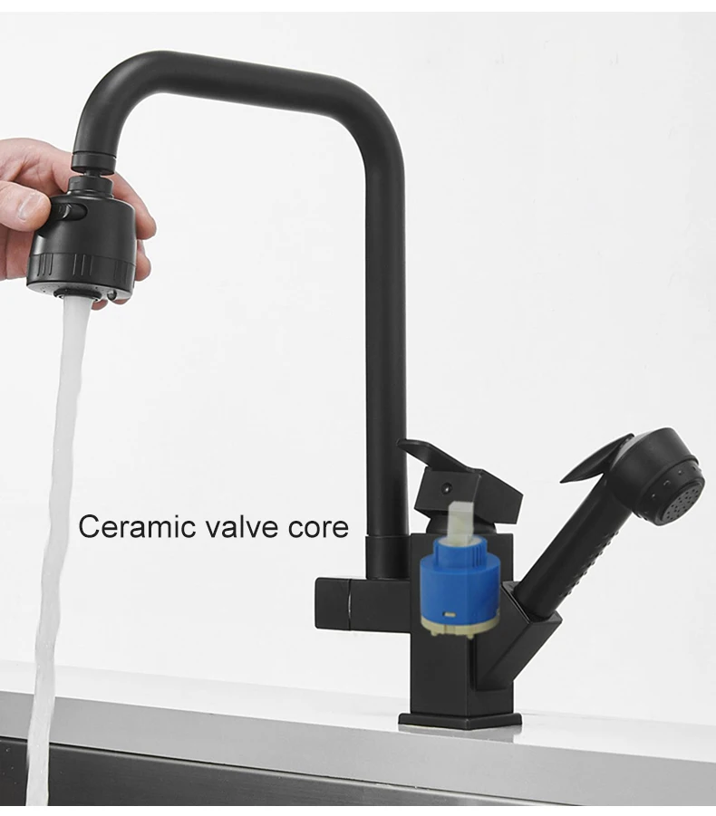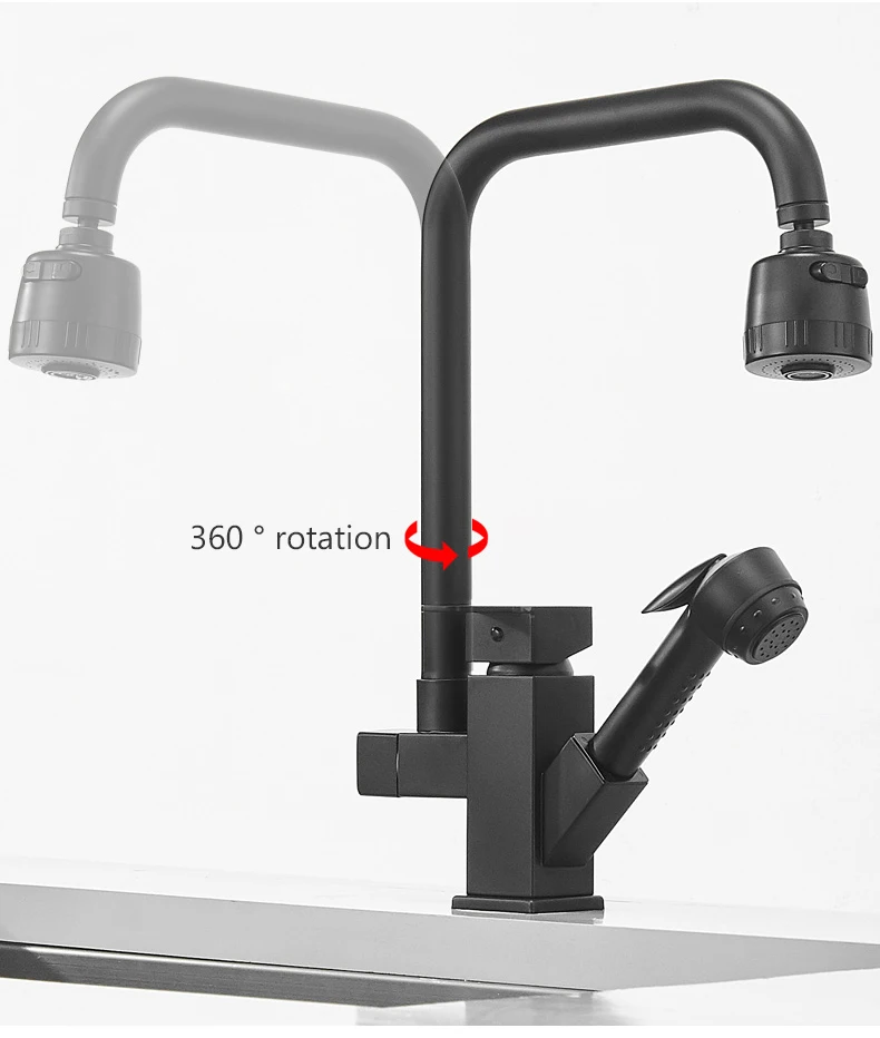 Mélangeur de robinet d'évier de cuisine extractible, robinet d'eau chaude et froide, mélangeur de grue de cuisine, robinets pivotants à 360 degrés noirs chromés ELF118
