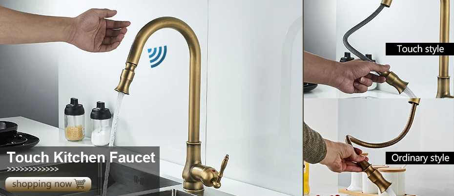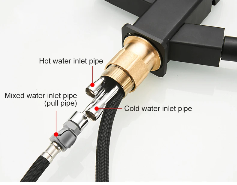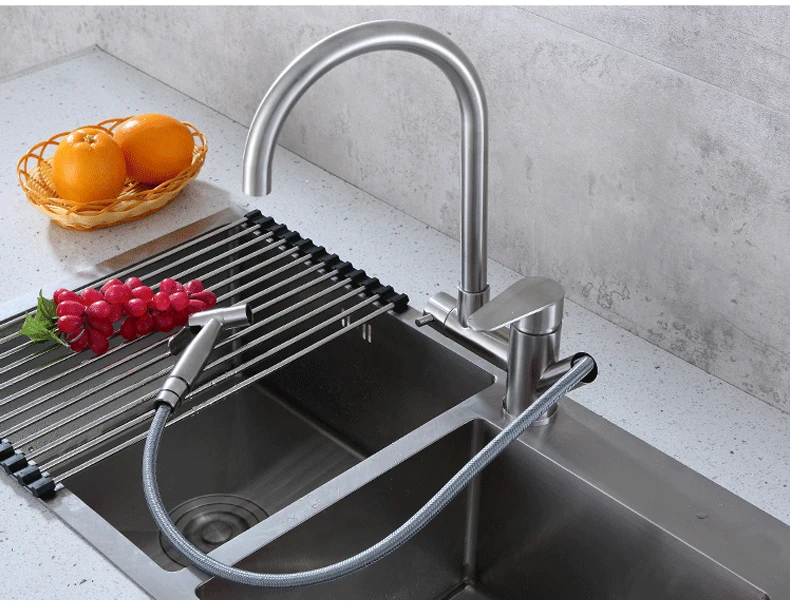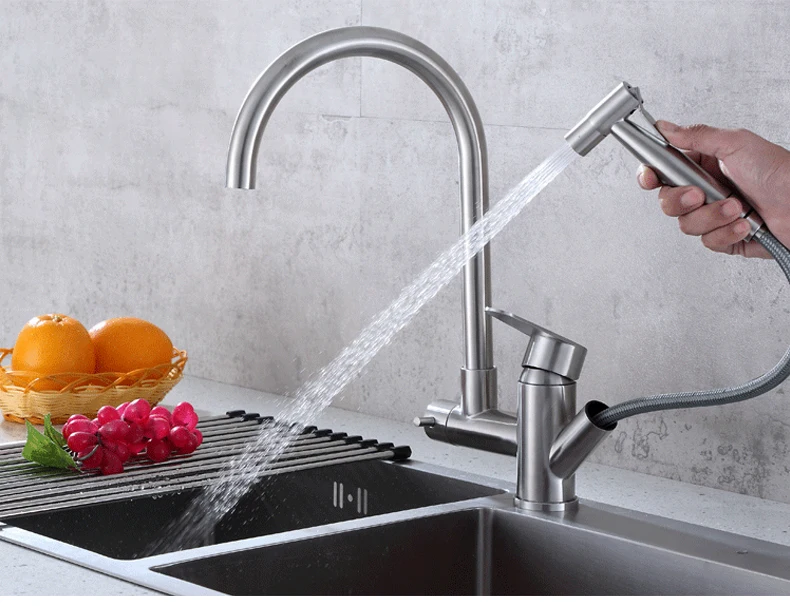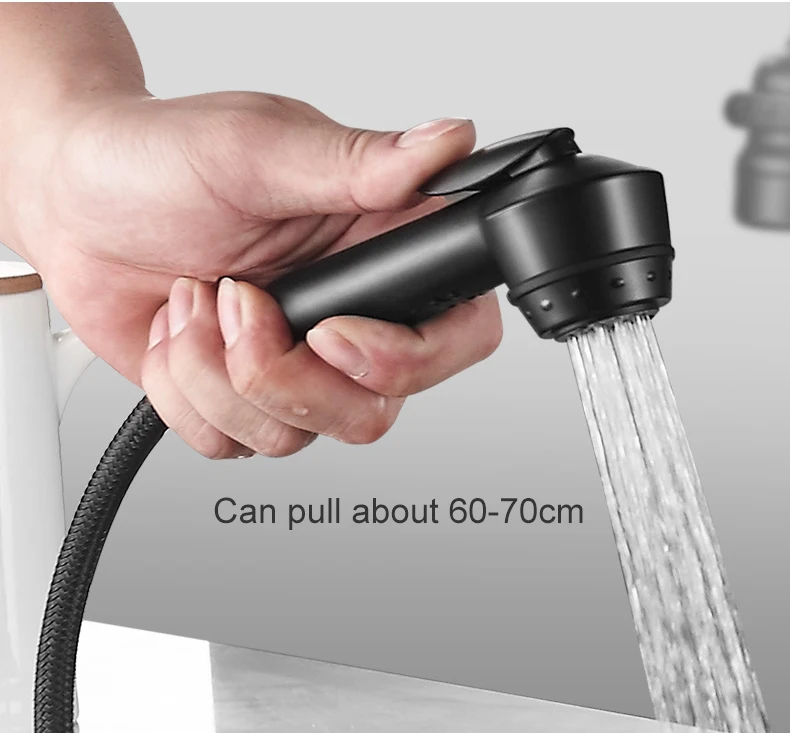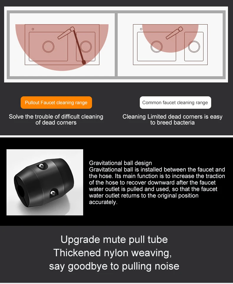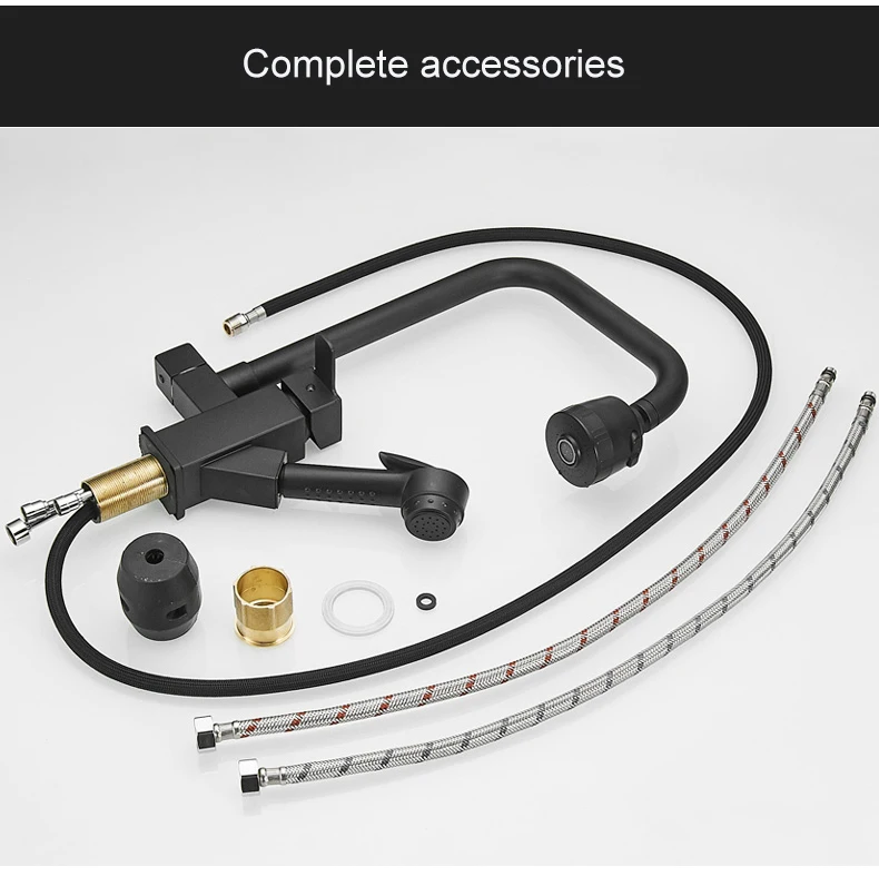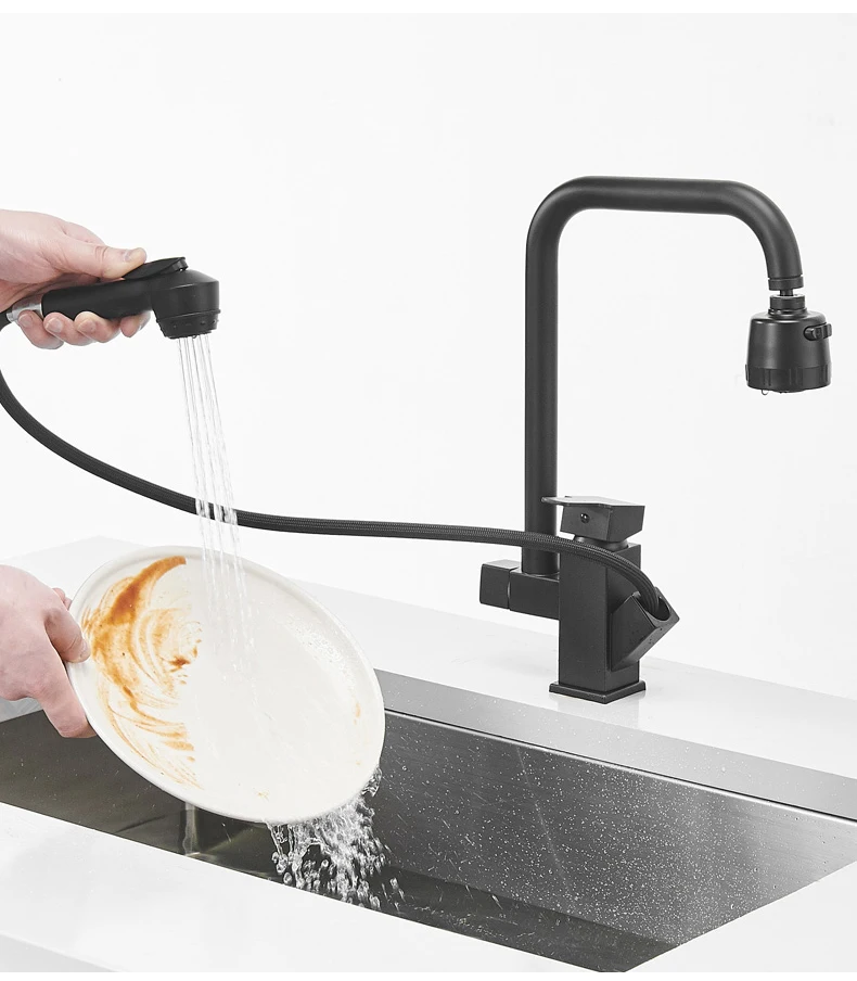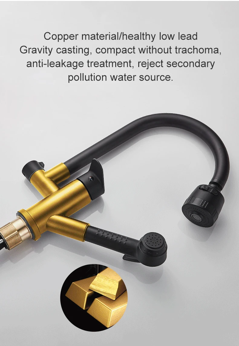 Mélangeur de robinet d'évier de cuisine extractible, robinet d'eau chaude et froide, mélangeur de grue de cuisine, robinets pivotants à 360 degrés noirs chromés ELF118