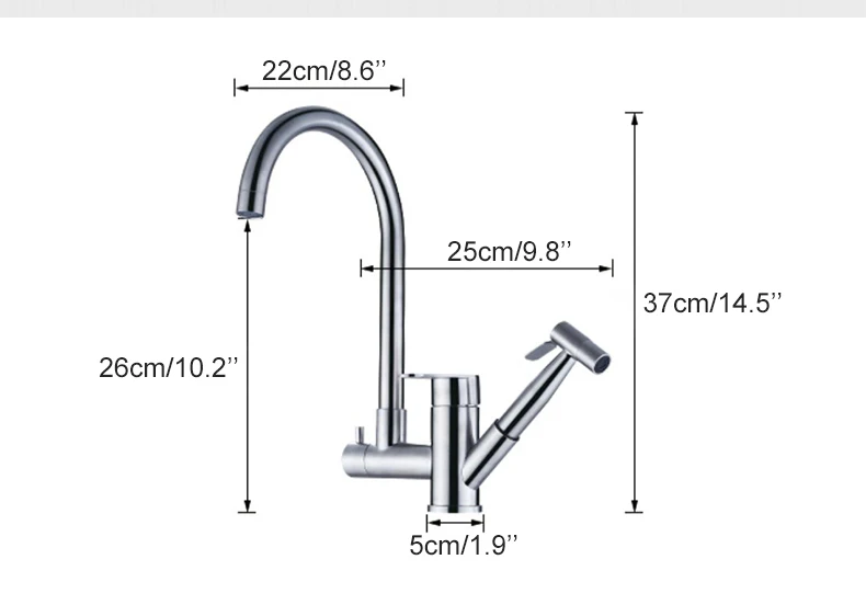 Mélangeur de robinet d'évier de cuisine extractible, 360 degrés chromés ELF118